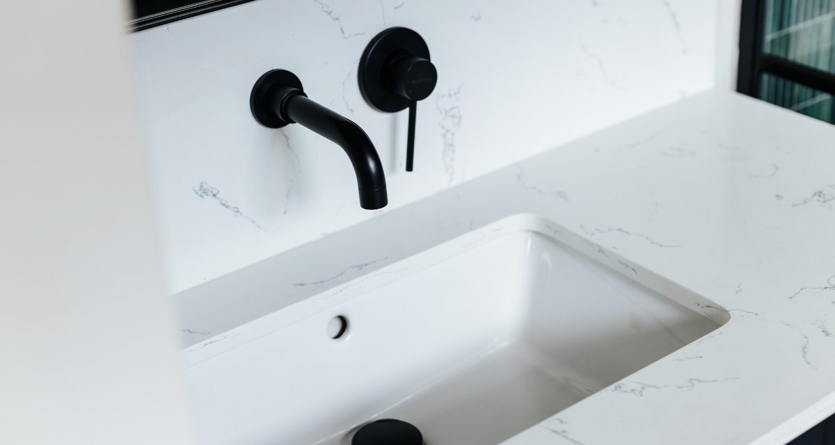 Wall-mounted plumbing fixtures help to free up counter space, and you’ll notice straight away how much bigger the room feels.